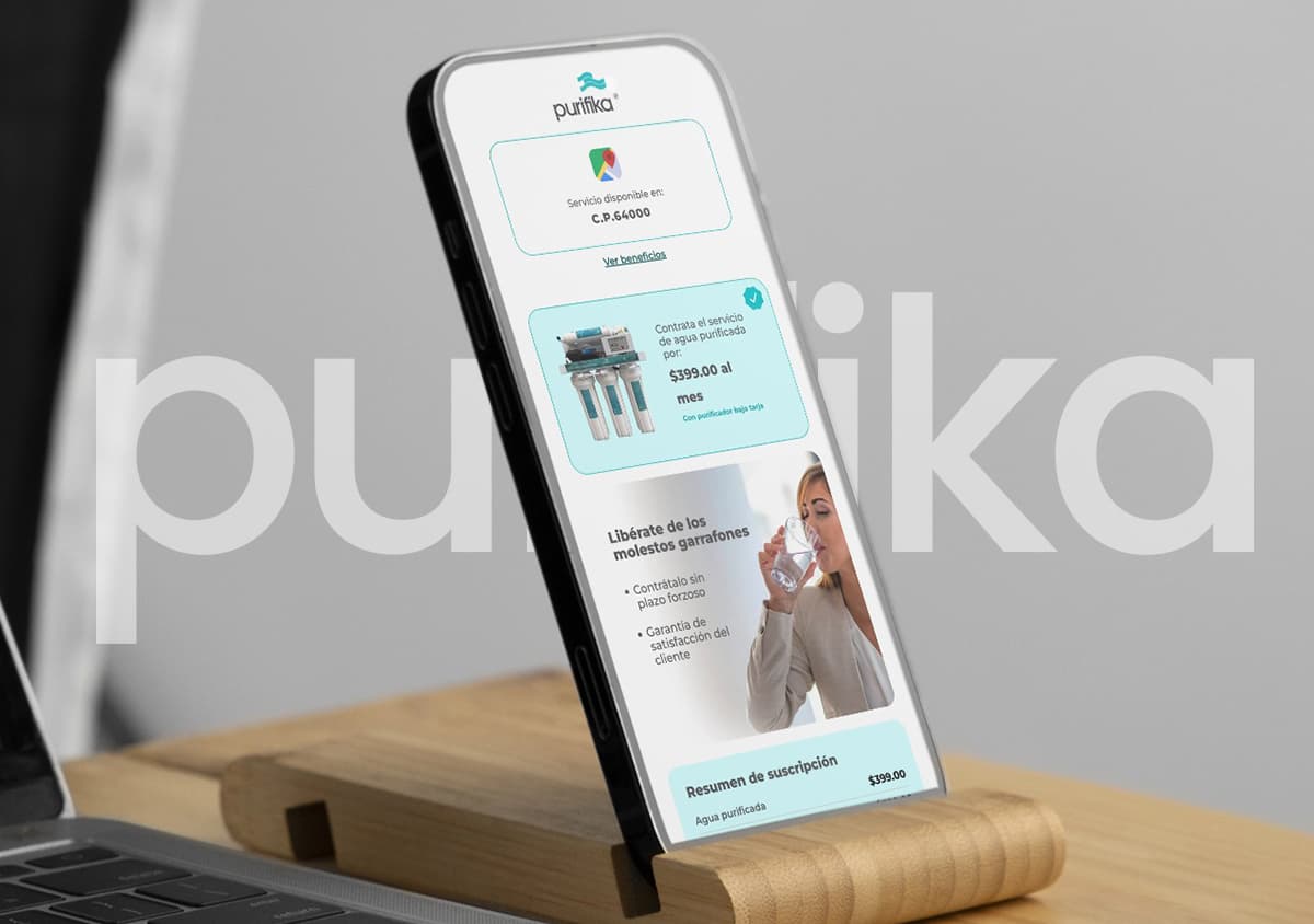 Ecommerce para realizar la contrataci贸n de servicio de purificadores de agua residencial de la marca purifika.Ver proyecto